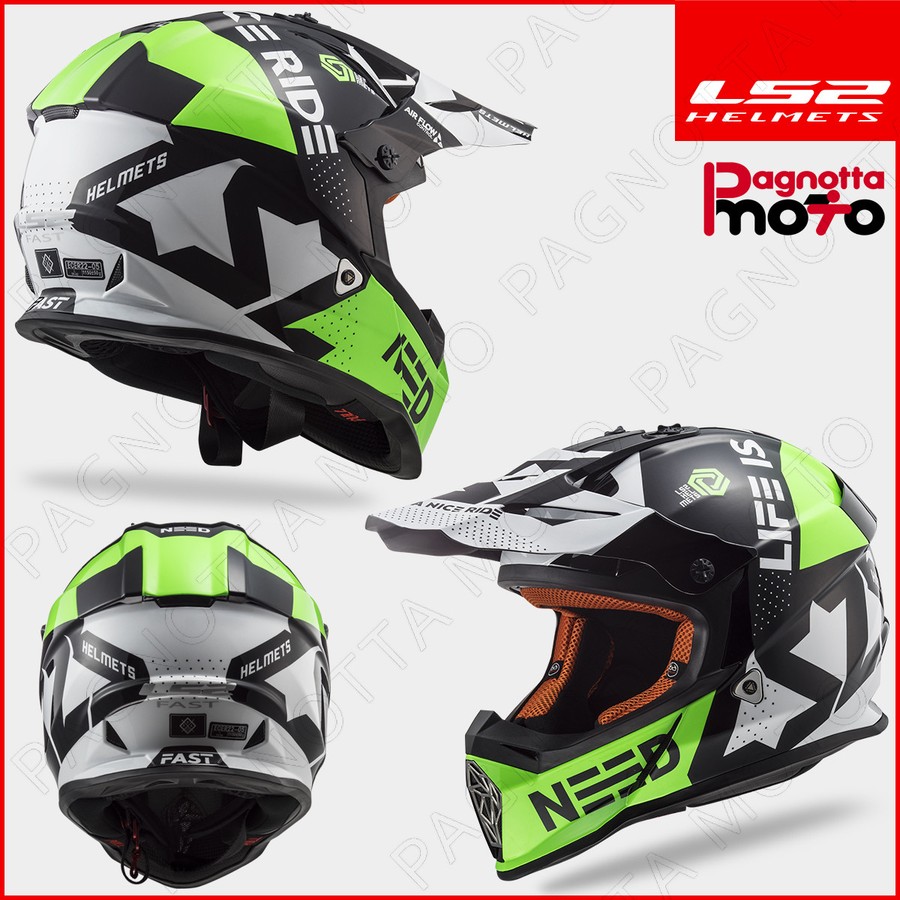 RIVENDITORE LS2 BOLLATE MILANO , CASCO HELMET CROSS ENDURO OFF ROAD LS2 FAST MX437 BLOCK BLACK GREEN NERO VERDE BOLLATE MILANO - Pagnotta moto srl